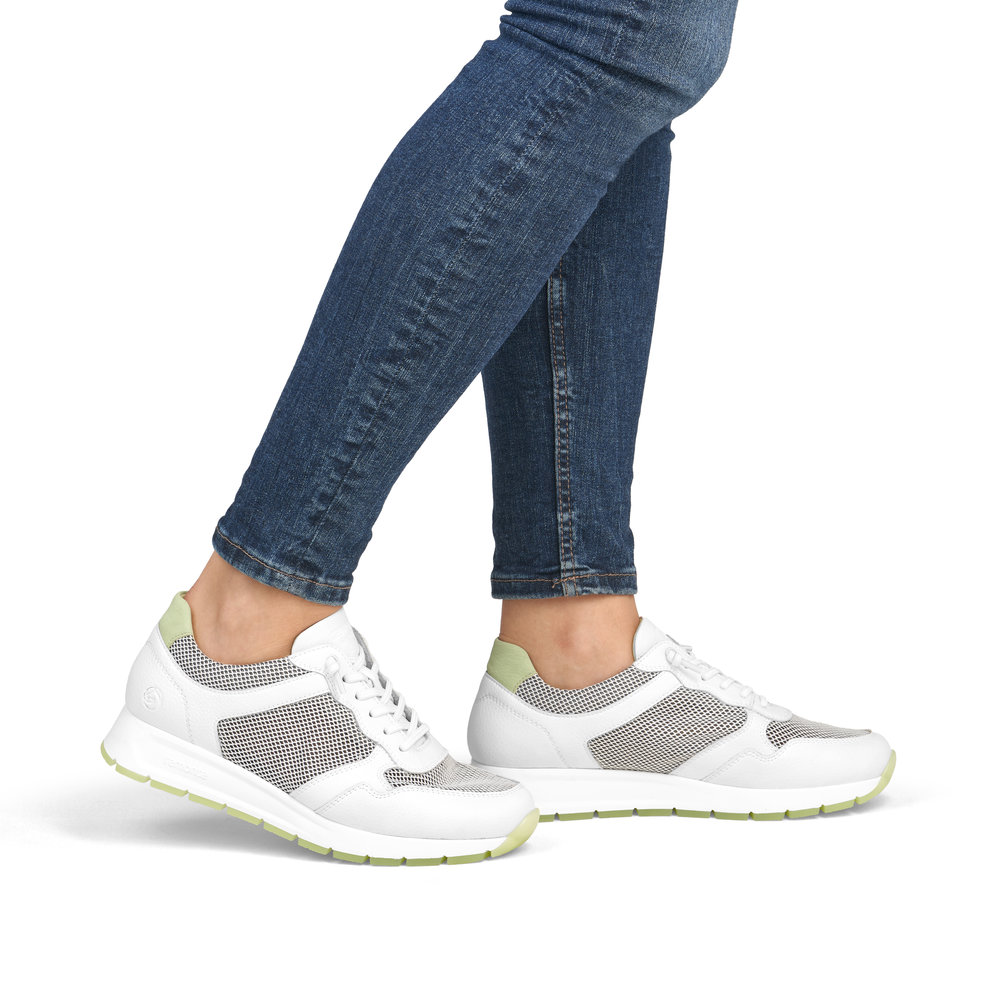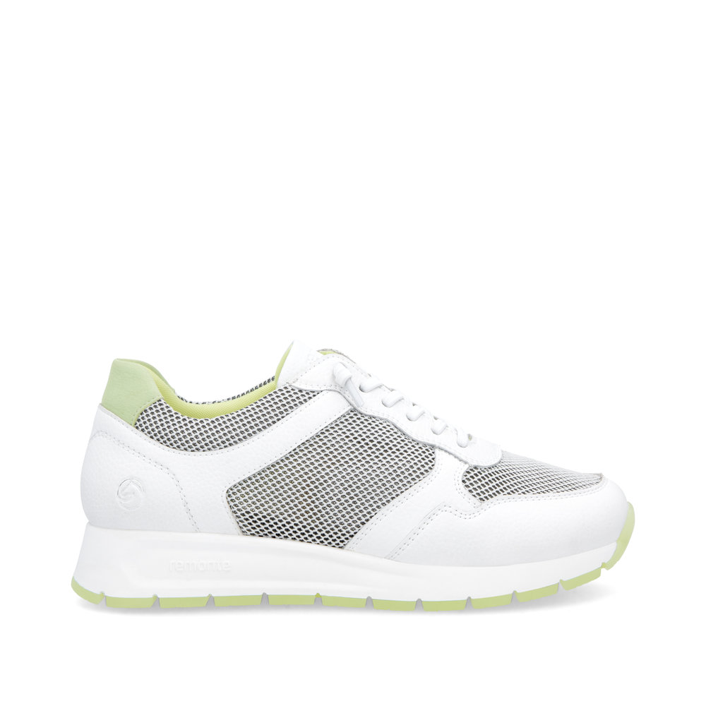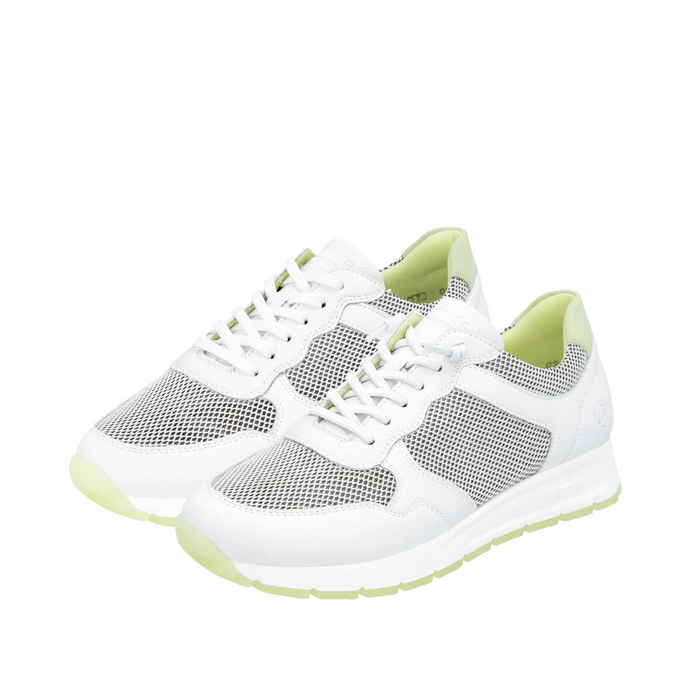 Obuv REMONTE představuje vyšší řadu značky RIEKER a vyniká precizní kombinací kvalitních svrchních materiálů. Spojení kůže a vzdušného textilního materiálu po stranách dodává teniskám nejen atraktivní vzhled, ale také mimořádnou prodyšnost a komfort. Díky pružné gumičce je obouvání snadné, ale pokud preferujete klasické šněrování, v balení najdete i bílé tkaničky. Flexibilní podešev s propracovanými detaily podtrhuje stylový design a měkká, anatomicky tvarovaná vyjímatelná stélka REMONTE Soft zajistí pohodlí i při celodenním nošení. Tyto tenisky nabízí dokonalou kombinaci módy a komfortu – bez kompromisů.
