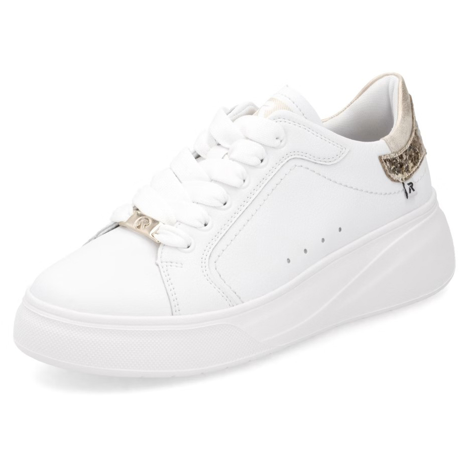 Tyto jedinečné tenisky RIEKER budou jako šperk zdobit vaše nohy a přinášet luxusní vzhled i maximální pohodlí. Bílé provedení svršku je elegantně doplněno zlatavými detaily v patní části, které jim dodávají sofistikovaný nádech. Díky šněrování si boty dokonale přizpůsobíte tvaru nohy a vyjímatelná, mimořádně měkká stélka vám zajistí celodenní komfort. Vyšší podešev poskytuje stabilní oporu a účinně tlumí nárazy při chůzi. Tyto stylové a funkční tenisky jsou skvělou volbou pro každodenní nošení, ať už do města, práce nebo na volný čas, kdy chcete spojit eleganci a pohodlí.