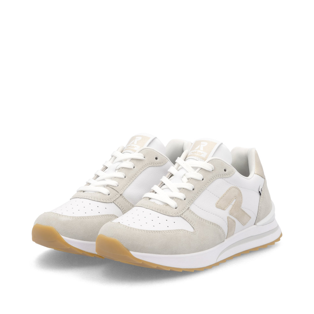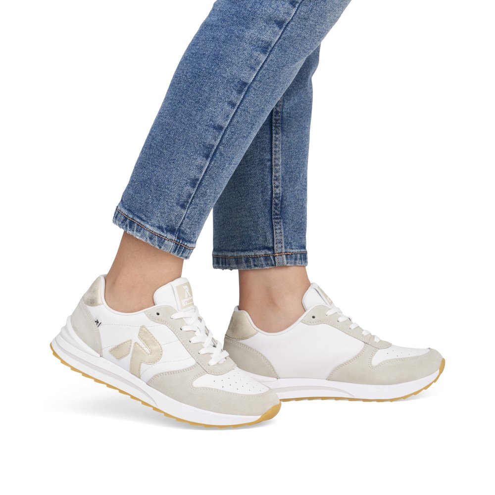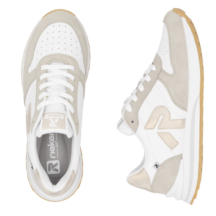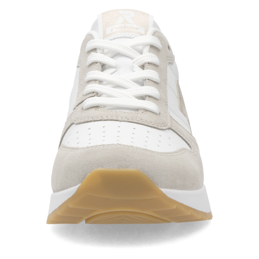 Dámské bílé kožené tenisky Rieker W2401-81 kombinují styl, pohodlí a kvalitu v jednom. Jejich svršek z měkké pravé kůže poskytuje nejen elegantní vzhled, ale také vysokou odolnost a přizpůsobivost tvaru chodidla. Díky lehké konstrukci a prodyšnému zpracování jsou ideální pro celodenní nošení, ať už do města, do práce nebo na volnočasové aktivity. Obuv je vybavena praktickým šněrováním, které umožňuje snadné přizpůsobení, a flexibilní podešví, jež tlumí nárazy a poskytuje stabilitu na různých površích. Rieker W2401-81 splňuje vysoké nároky na pohodlí a antistresová technologie zajišťuje lehký a pohodlný krok. Skvělá volba pro každodenní elegantní styl.