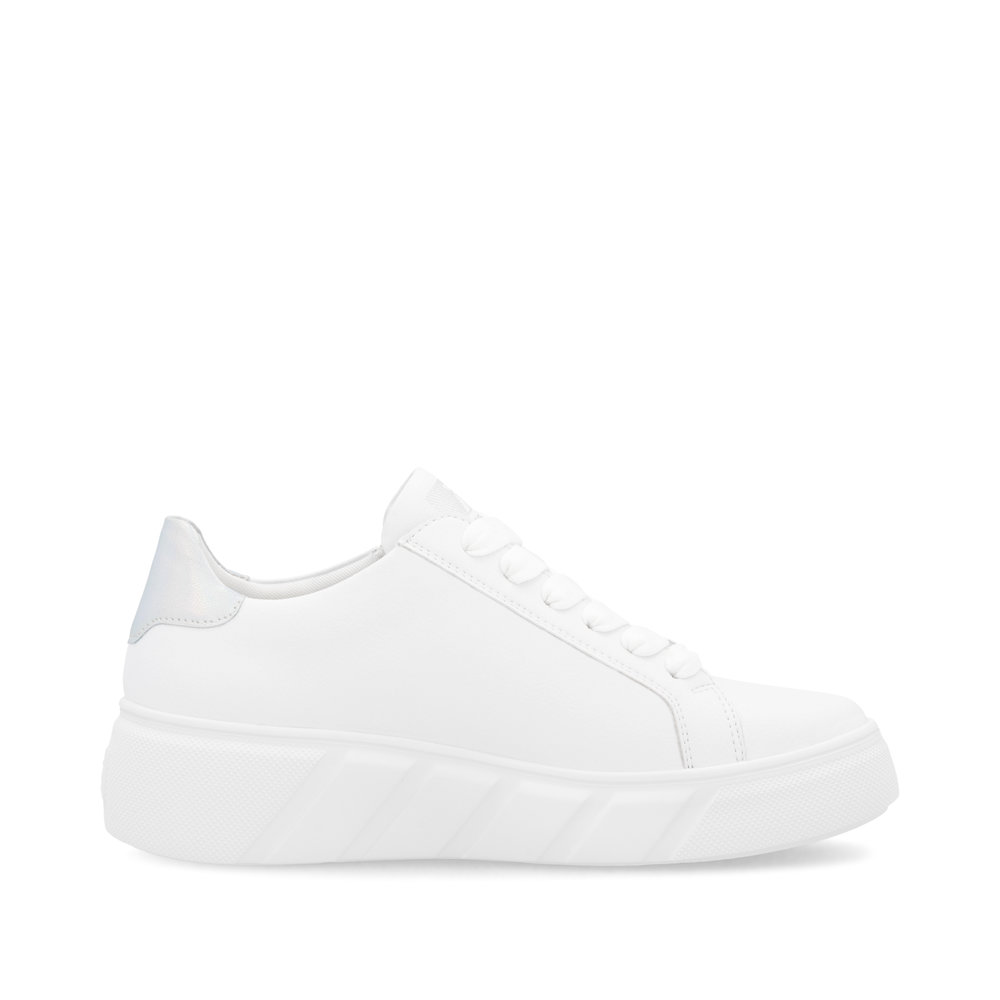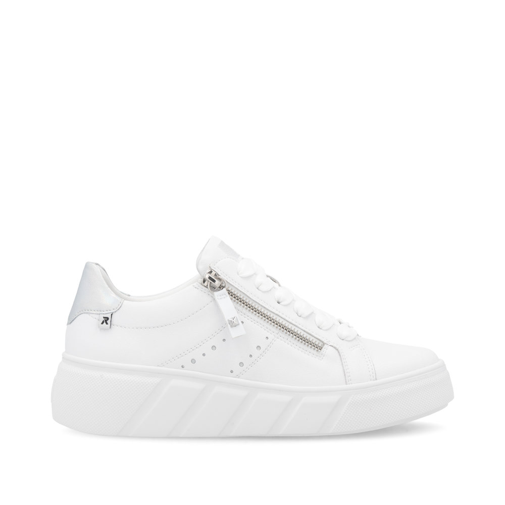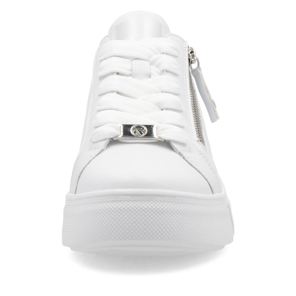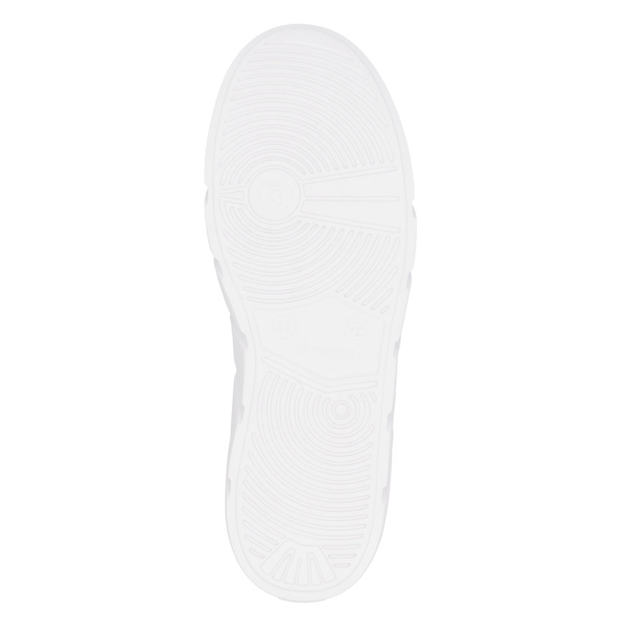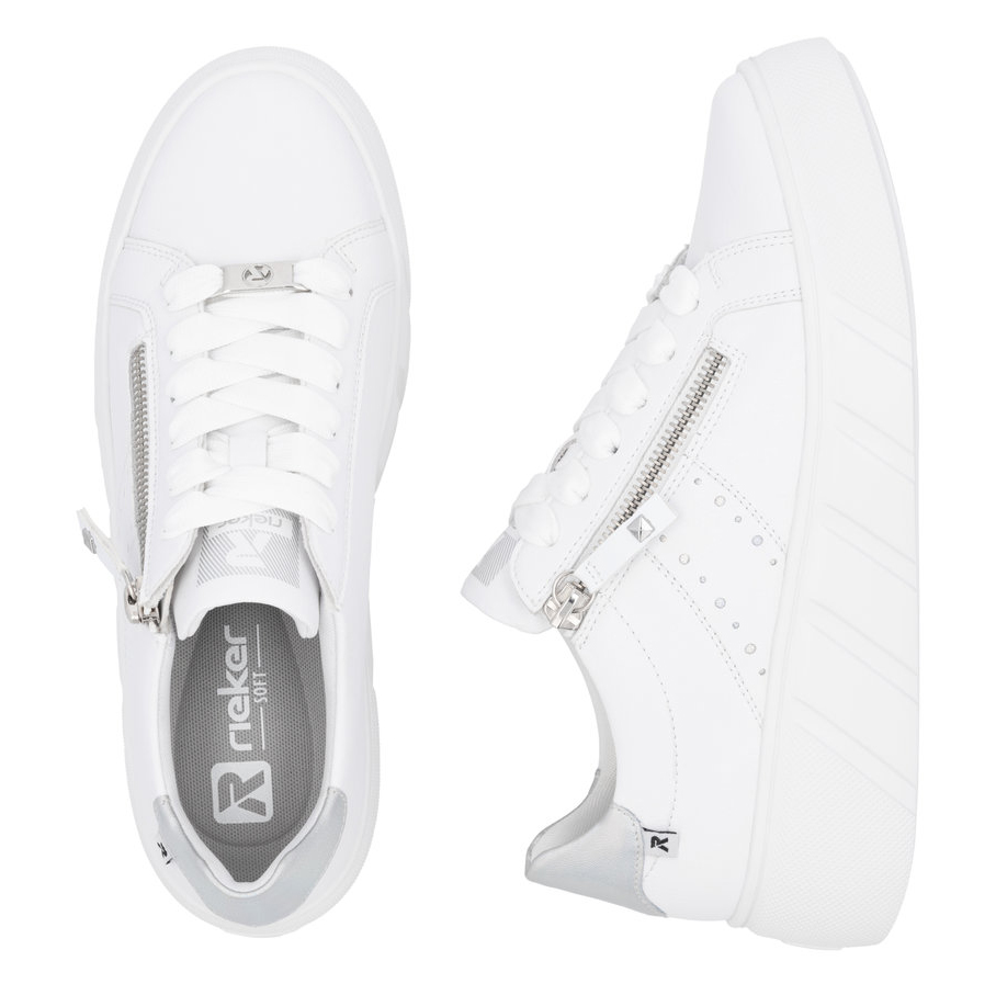 Dopřejte si sportovní styl s botami značky RIEKER, které spojují eleganci, pohodlí a funkčnost. Tyto kožené tenisky v bílé barvě vynikají jednoduchostí a stylovými detaily, které dodávají obuvi jedinečný vzhled. Ozdobné prvky na boční straně spolu s logem značky podtrhují originalitu modelu. Robustní bílá podešev nejen vizuálně doplňuje moderní design, ale také efektivně tlumí nárazy při chůzi. Praktické šněrování zajistí pevné uchycení na noze, zatímco zip umožní snadné nazutí. Vyjímatelná měkká stélka se dokonale přizpůsobí chodidlu a zajišťuje maximální pohodlí. Tento model je ideální volbou pro každodenní nošení a představuje dokonalou rovnováhu mezi moderním vzhledem a komfortem, který nabízí technologie RIEKER Sport.