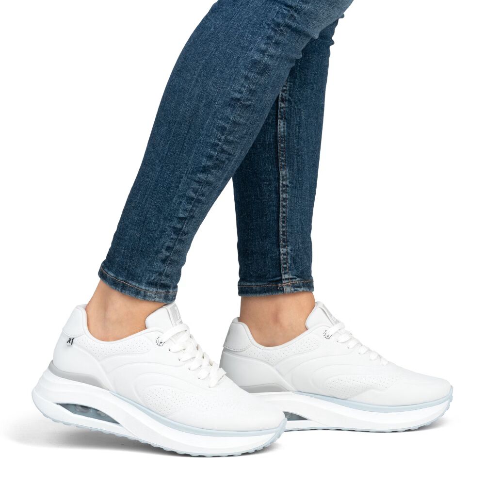 Tyto bílé tenisky značky RIEKER spojují moderní design a maximální pohodlí, čímž se stávají ideální volbou pro každodenní nošení. Svršek zdobený elegantními liniemi a jemným perforovaným vzorem dodává obuvi jedinečný vzhled, zatímco robustní podešev s integrovanou vzduchovou částí zajišťuje optimální odpružení při chůzi. Šněrování umožňuje přesné přizpůsobení tvaru nohy a zajišťuje stabilitu, zatímco vyjímatelná měkká stélka poskytuje ještě vyšší úroveň komfortu. Díky technologii Antistress je podešev lehká, pružná a dokonale tlumí nárazy. Tento model je navíc vyroben z veganských materiálů, což ho činí skvělou volbou pro ty, kteří hledají stylovou, funkční a zároveň etickou obuv. RIEKER Sport představuje harmonii mezi inovativním provedením a komfortem, který oceníte při každém kroku.