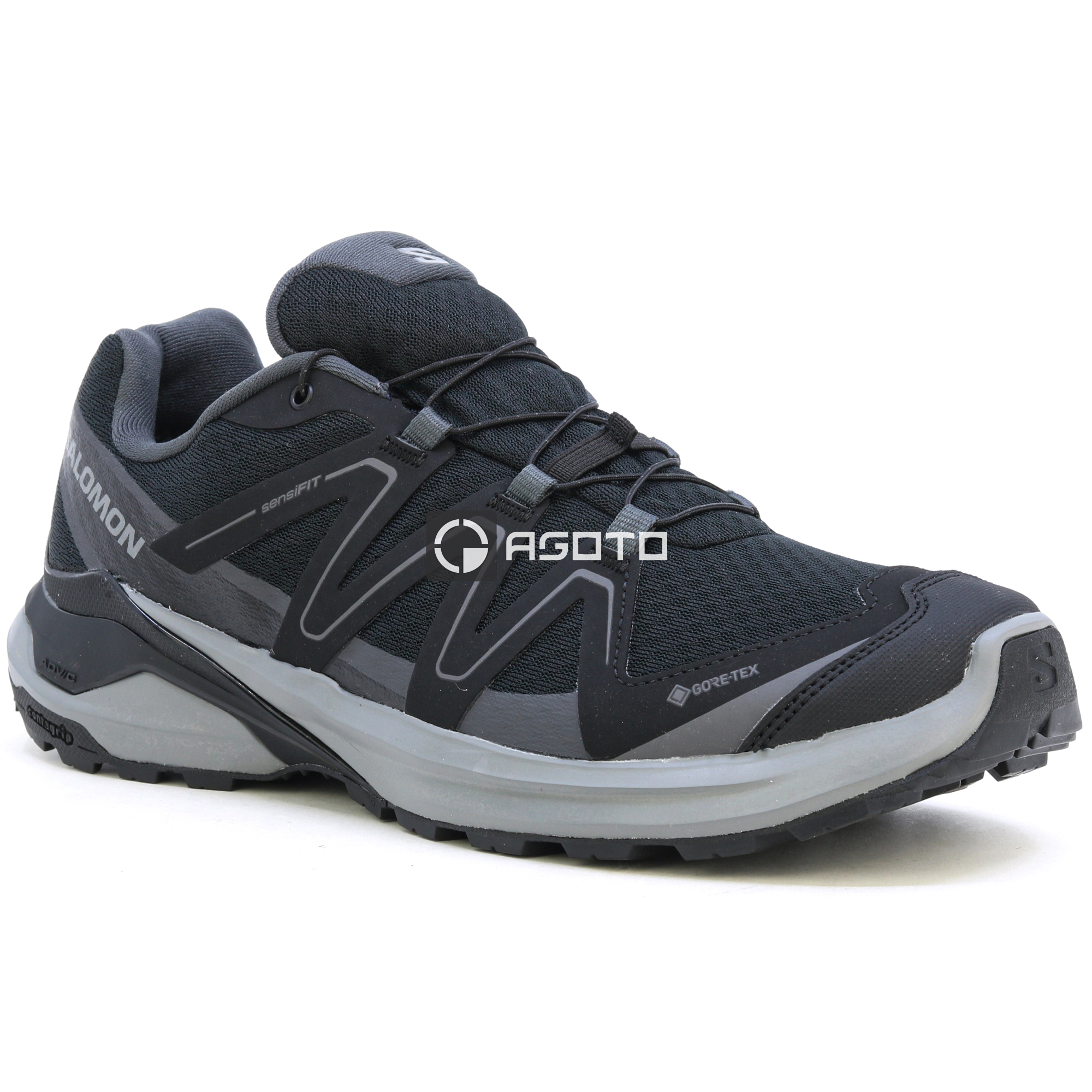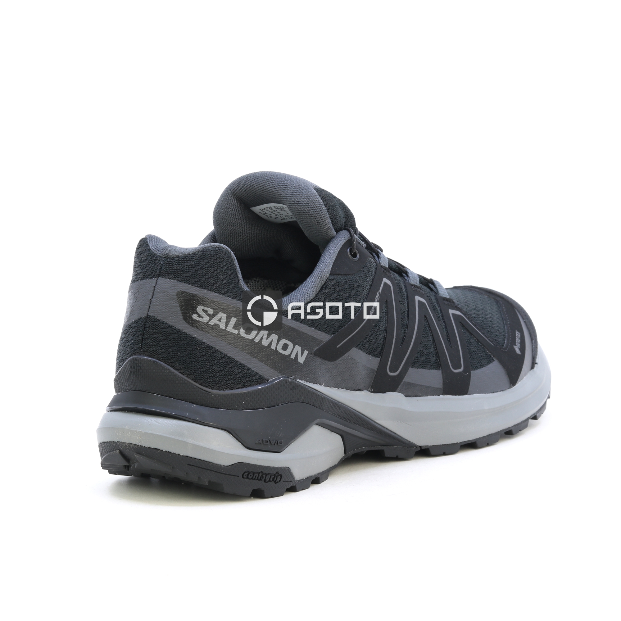 Salomon EXAMOTION GTX v barevné kombinaci Dark Navy / Nautical Blue / Monument představuje všestrannou outdoorovou obuv, která spojuje sportovní vzhled, inovativní technologie a maximální pohodlí. Díky membráně GORE-TEX zůstávají vaše nohy v suchu i při nepříznivém počasí, zatímco prodyšné materiály zajišťují výbornou ventilaci během celodenního nošení. Odolný svršek je navržen tak, aby vydržel náročné podmínky a zároveň perfektně padl, ať už se pohybujete po lesních stezkách nebo městském chodníku. Lehká mezipodešev poskytuje citelnou oporu a tlumení nárazů, zatímco podrážka s agresivním vzorkem zaručuje výbornou přilnavost na různých typech povrchů. Model EXAMOTION GTX je ideální pro aktivní jedince, kteří hledají spolehlivou obuv pro každodenní výpravy i náročnější výlety v přírodě.