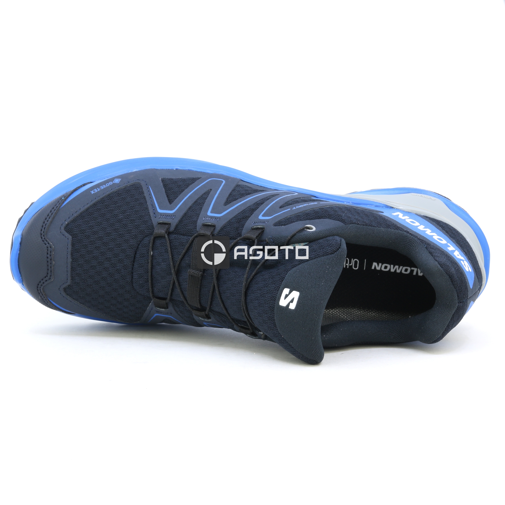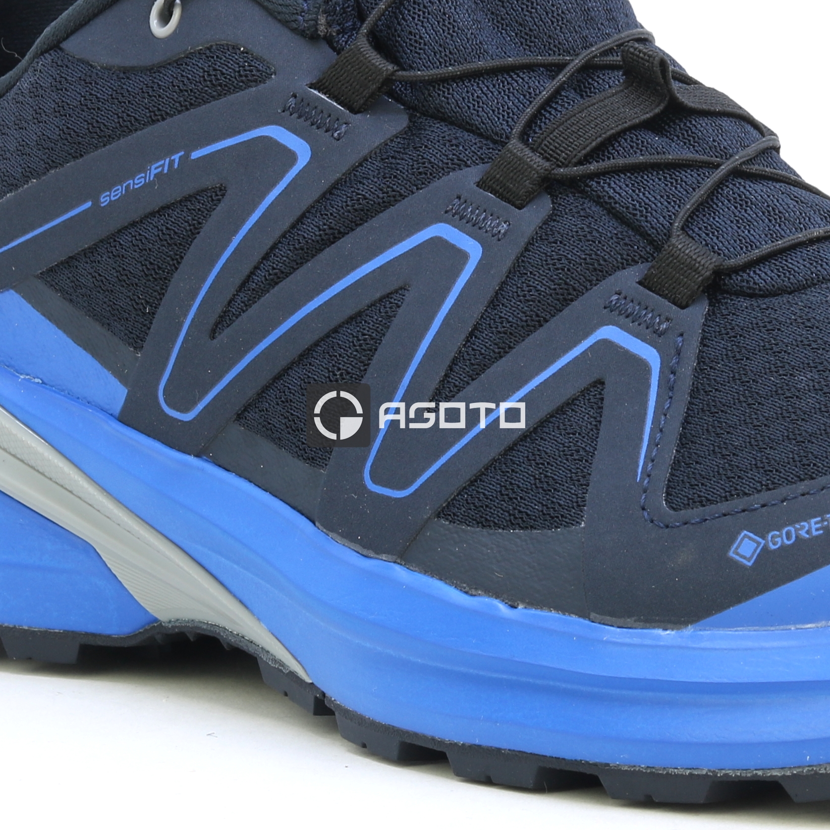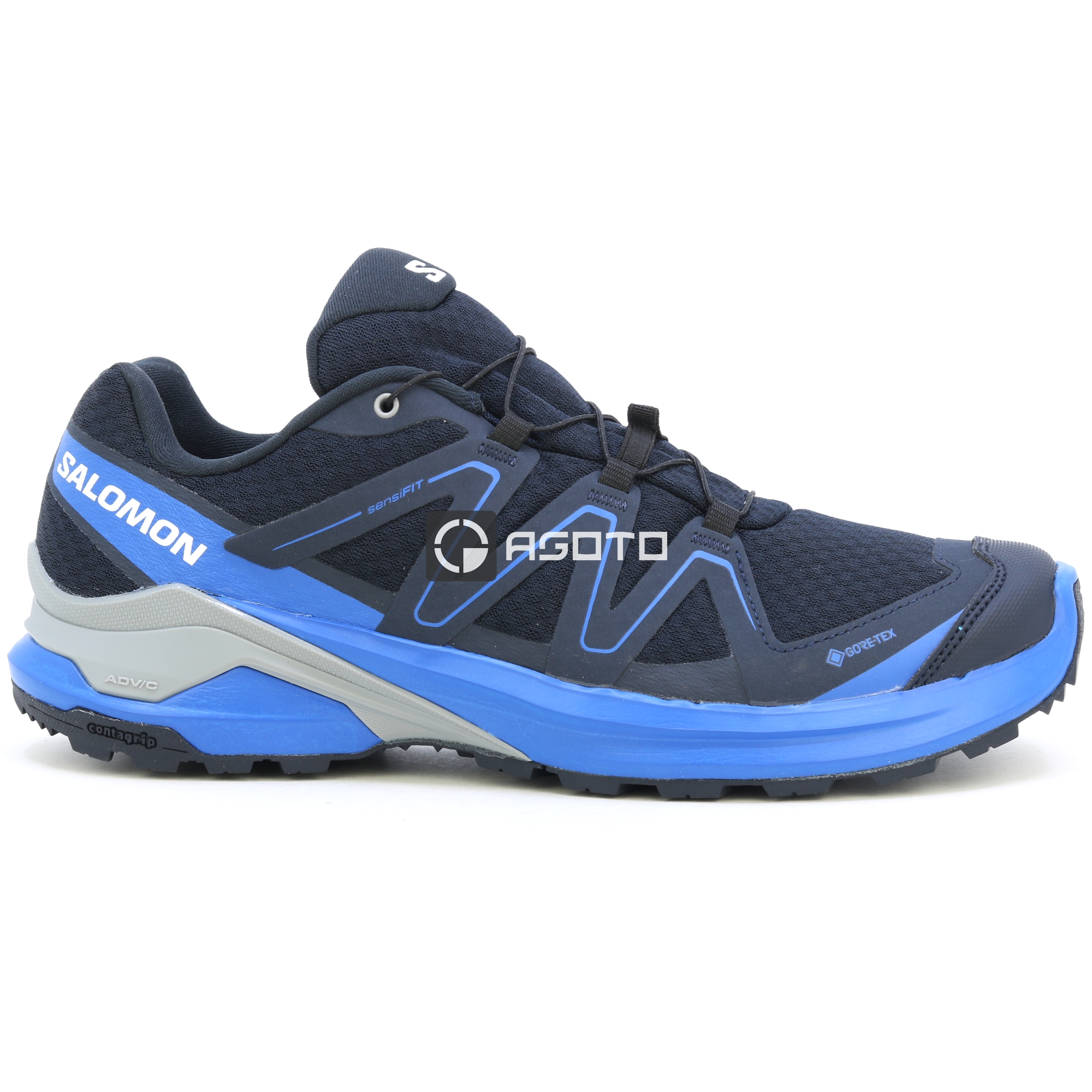 Salomon EXAMOTION GTX v barevné kombinaci Dark Navy / Nautical Blue / Monument představuje všestrannou outdoorovou obuv, která spojuje sportovní vzhled, inovativní technologie a maximální pohodlí. Díky membráně GORE-TEX zůstávají vaše nohy v suchu i při nepříznivém počasí, zatímco prodyšné materiály zajišťují výbornou ventilaci během celodenního nošení. Odolný svršek je navržen tak, aby vydržel náročné podmínky a zároveň perfektně padl, ať už se pohybujete po lesních stezkách nebo městském chodníku. Lehká mezipodešev poskytuje citelnou oporu a tlumení nárazů, zatímco podrážka s agresivním vzorkem zaručuje výbornou přilnavost na různých typech povrchů. Model EXAMOTION GTX je ideální pro aktivní jedince, kteří hledají spolehlivou obuv pro každodenní výpravy i náročnější výlety v přírodě.