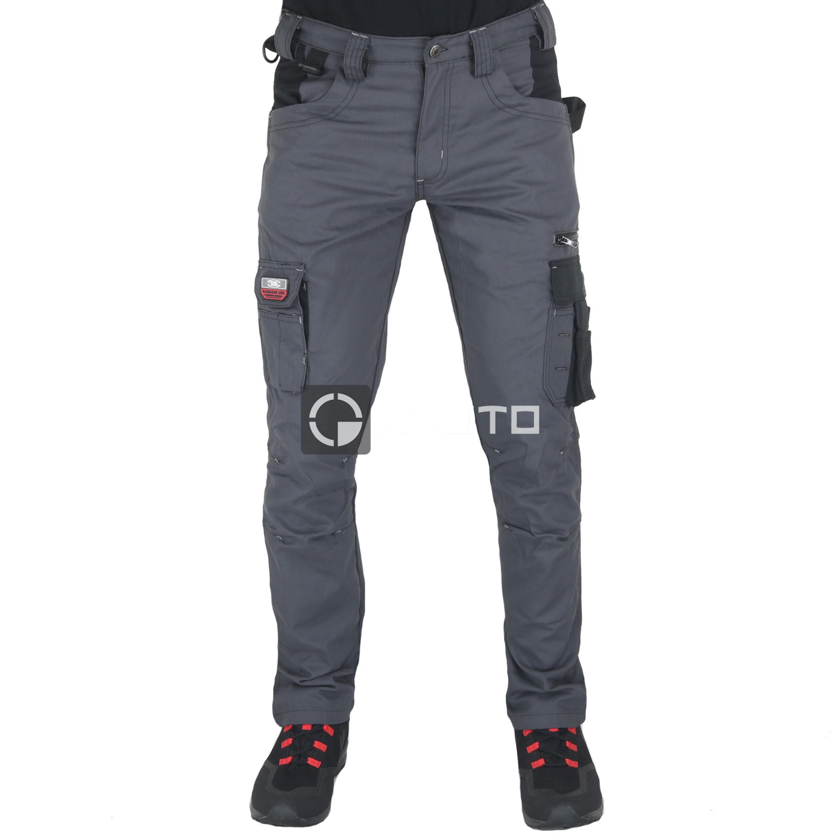 Obsahuje poklopec se zipem a knoflíkem, D-kroužky, dvě přední kapsy, dvojitou kapsu na pravítko napravo, multifunkční kapsu s držákem na pero napravo, praktické kapsy na levé straně, jedna se zapínáním na zip a druhá s klopou a suchý zip, dvě zadní kapsy z odolné látky s klopou a knoflíkem, spojené dvojité prošívané švy. Série Harrison je: vyrobeno z pevné tkaniny, vhodné pro nejnáročnější práce; - odolný, praktický a funkční a vyznačuje se širokou škálou příslušenství, multifunkčními kapsami a odolnými výztuhami v technické tkanině; - vybavené detaily, jako jsou zesílené běhouny a spojené dvojité švy v kontrastní barvě, které zajišťují dlouhodobé používání a vysokou kvalitu. Ochrana před riziky znečištění a škodlivým působením lehkého poškození. Výrobek byl navržen a vyroben v souladu s nařízením (EU) 2016/425 a následnými dodatky.
