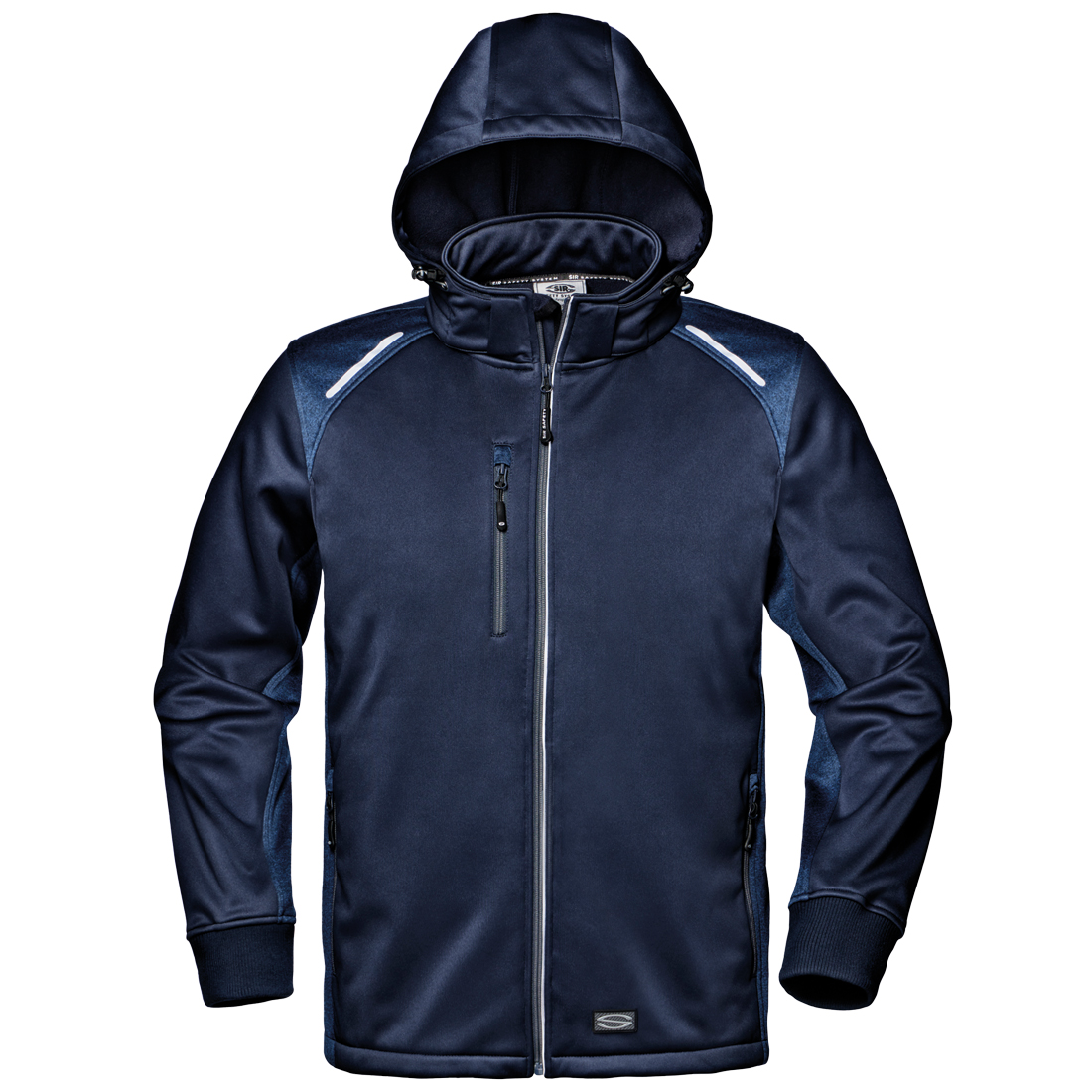 Bunda z materiálu softshell ze 100% polyesteru s podšívkou z mikroflísu o hmotnosti 144 g/m2 a celkovou gramáží 350 g/m2. Disponuje centrálním zapínáním na zip s vnitřní klopou proti větru a zamotání, zakončenou těsně u okraje. Odnímatelná kapuce na zip je nastavitelná pomocí šňůrek. Bunda má kapsy na ruce se zapínáním na zip, náprsní kapsu na zip a elastické úpletové manžety. Softshellové oblečení je ideální pro ochranu proti větru, dešti a chladu. Materiál je extrémně lehký, přesto velmi výkonný, elastický a prodyšný.