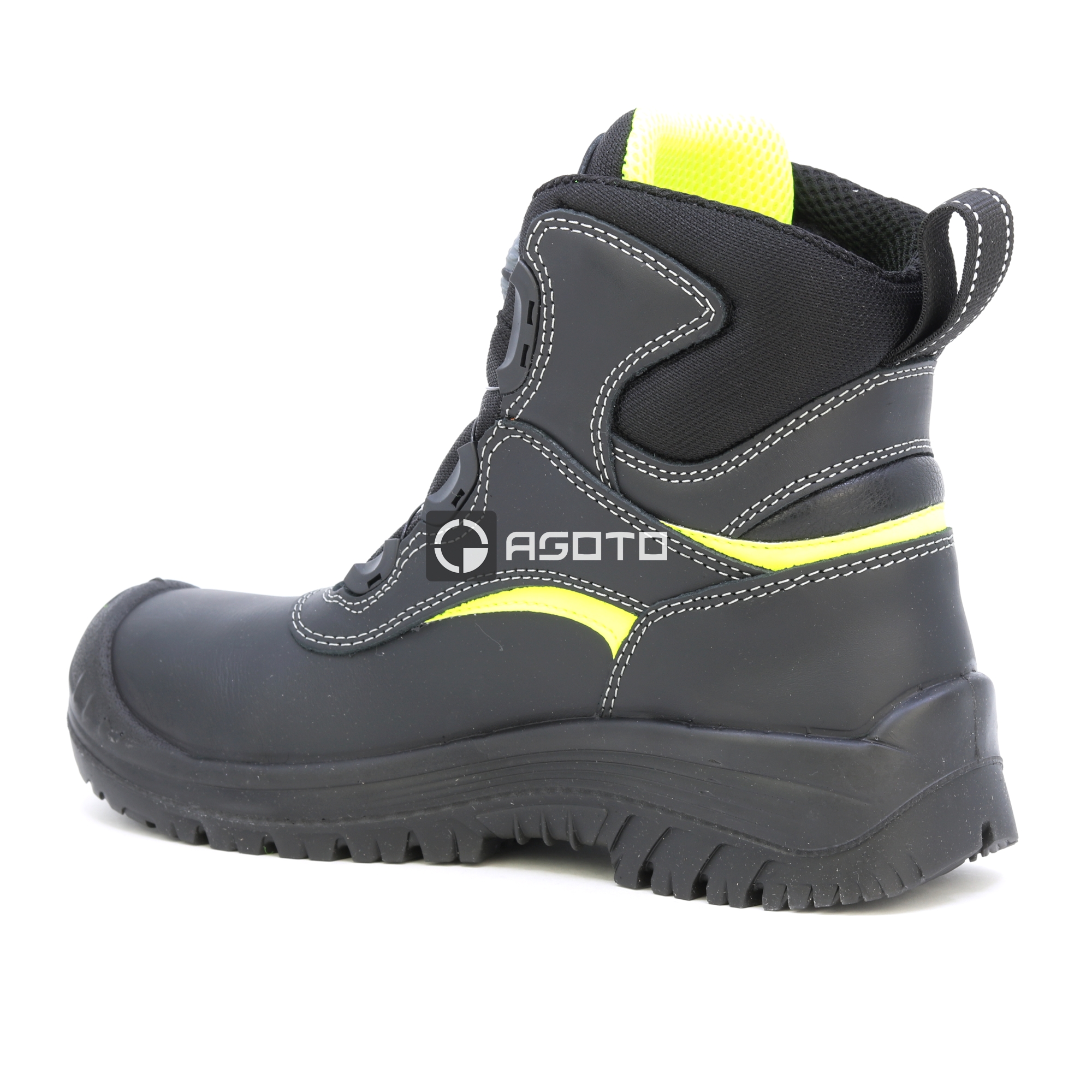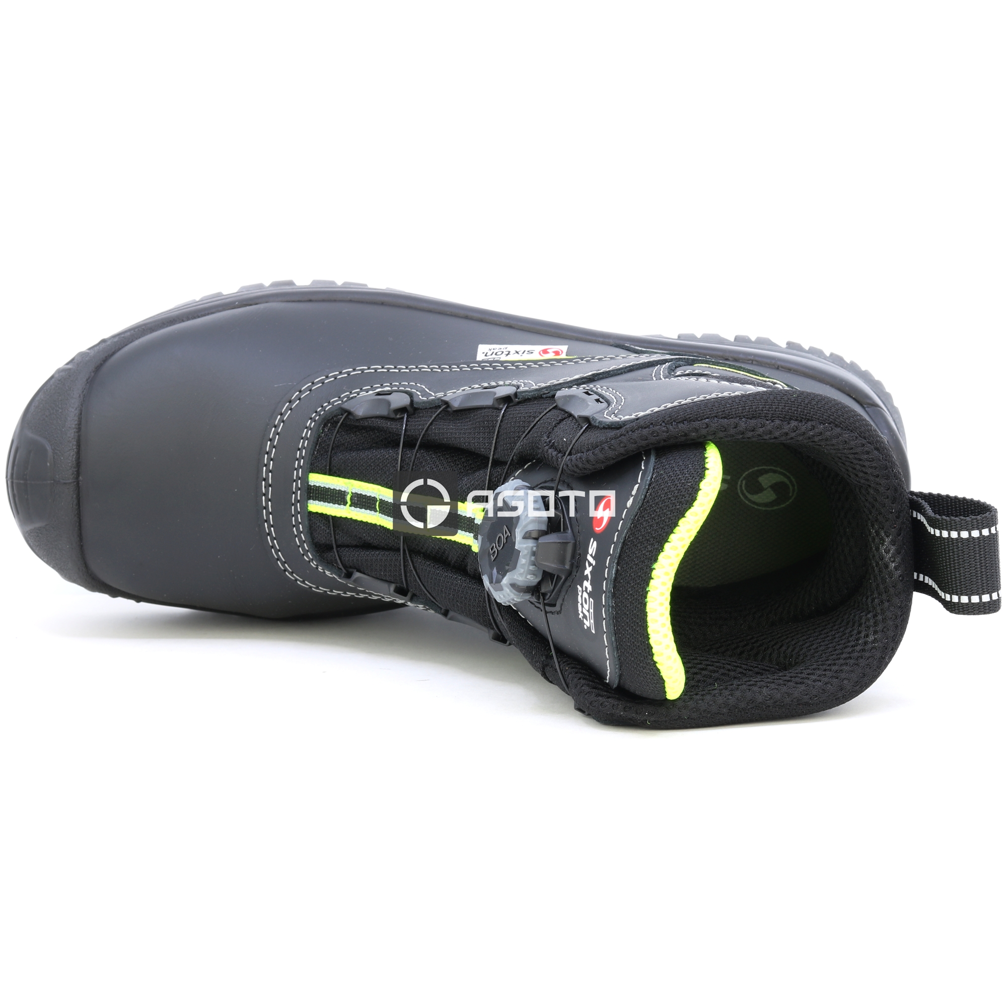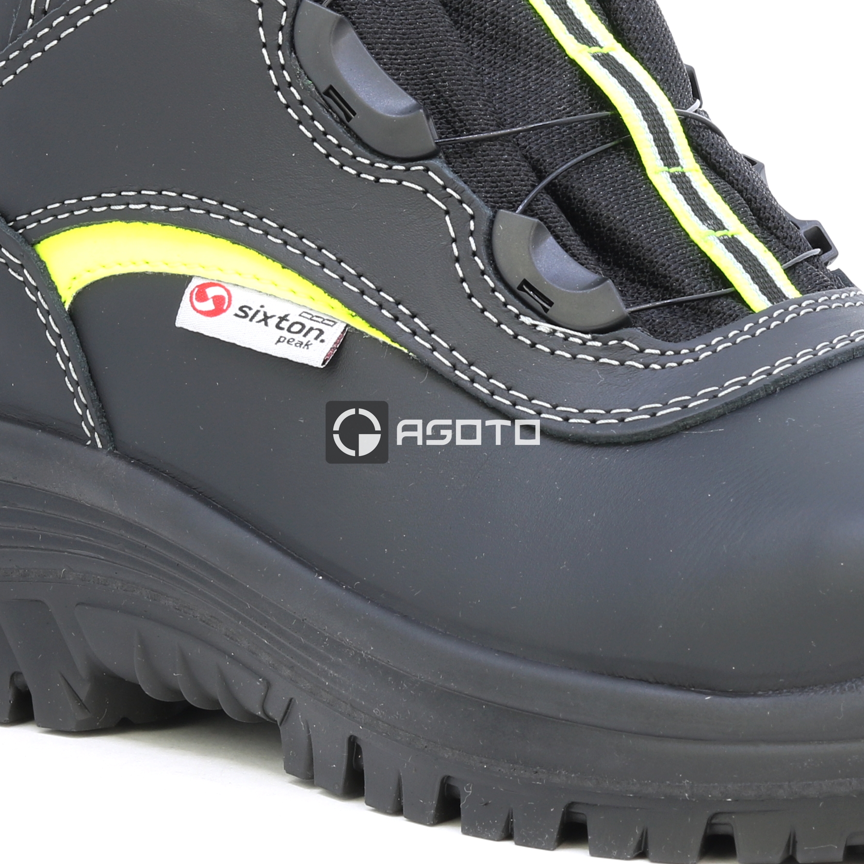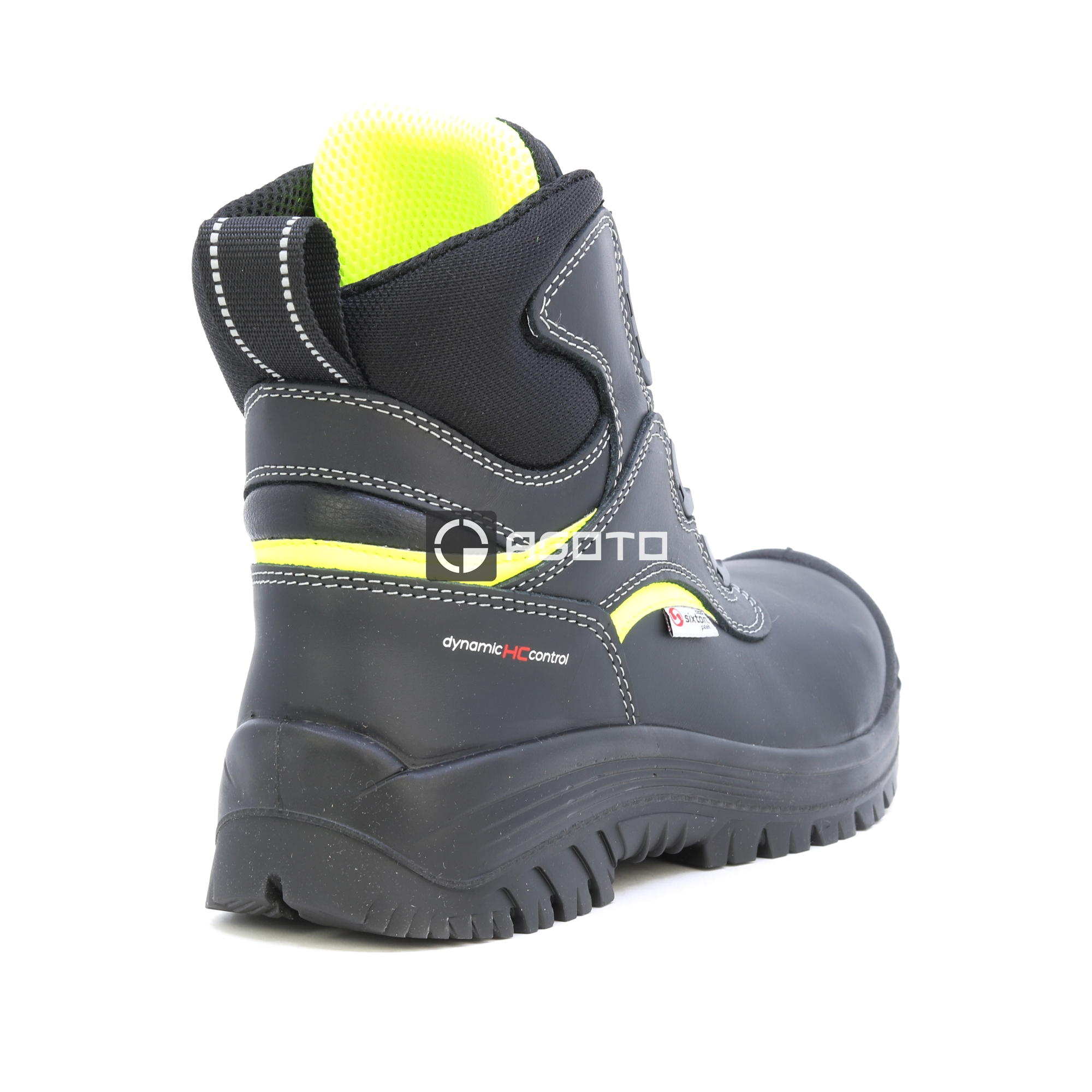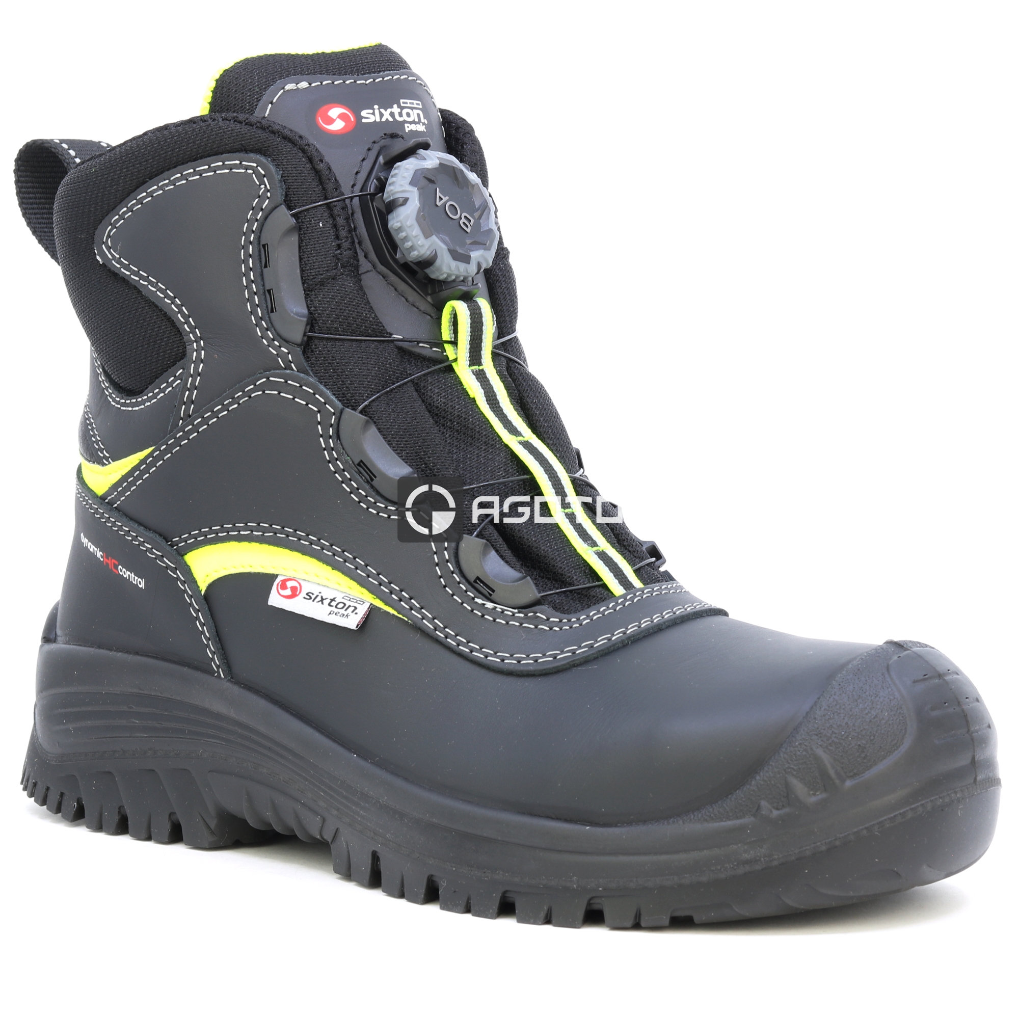 Vysoká bezpečnostní obuv S3 je vyrobena ze stabilní hovězí kůže odolné proti roztržení, která má také dobré vodoodpudivé vlastnosti. Vnitřní podšívka se skládá z 3D síťoviny a umožňuje dokonalou cirkulaci vzduchu uvnitř. Anatomicky tvarovaná stélka skvěle podpírá chodidlo a je navíc antibakteriální. Vysoce přilnavá a dobře profilovaná podešev je vyrobena z DUO PU a nabízí nejlepší protiskluzové vlastnosti. Kompozitní plastová tužinka a textilní průchozí podrážka neobsahují kov. Boty lze rychle zavřít a otevřít pomocí otočného systému BOA®.