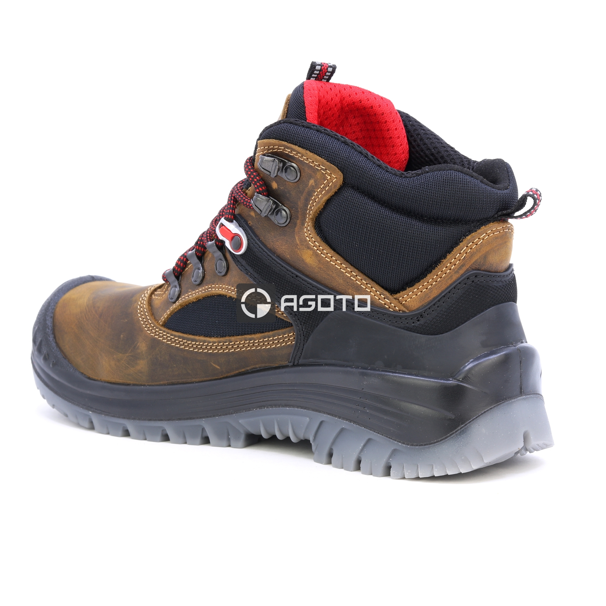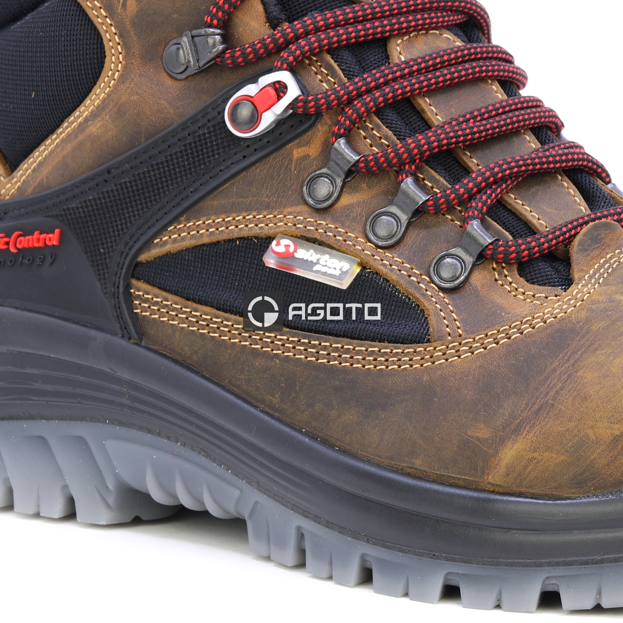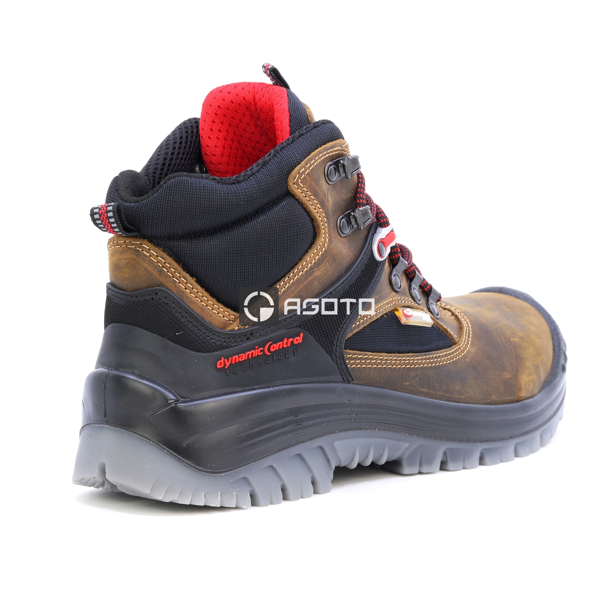 Kožené pracovní boty italské značky Peak se stupněm ochrany S3 jsou navrženy tak, aby vyhověly nejpřísnějším požadavkům kladeným na pracovní obuv. Špička obuvi obsahuje kompozitovou tužinku s kevlarovou stélkou pro účinnou ochranu proti mechanickému nárazu. Výhodou kompozitové tužinky je vlastnost, která zabraňuje přehřívání v letních měsících a zároveň vede k udržení tepelného komfortu při chladných dnech. Svršek boty je vyroben z kvalitní lícové kůže. Vnitřek obuvi je opatřen prodyšnou textilií, která umožňuje noze volně dýchat při vysoké pracovní zátěži. Podrážka je vyrobena z antistatického a olejivzdorného materiálu. Pracovní obuv Peak udělá radost zákazníkům hledajícím u obuvi zejména kvalitu a pohodlí. EN ISO 20345 - BEZPEČNOSTNÍ OBUV