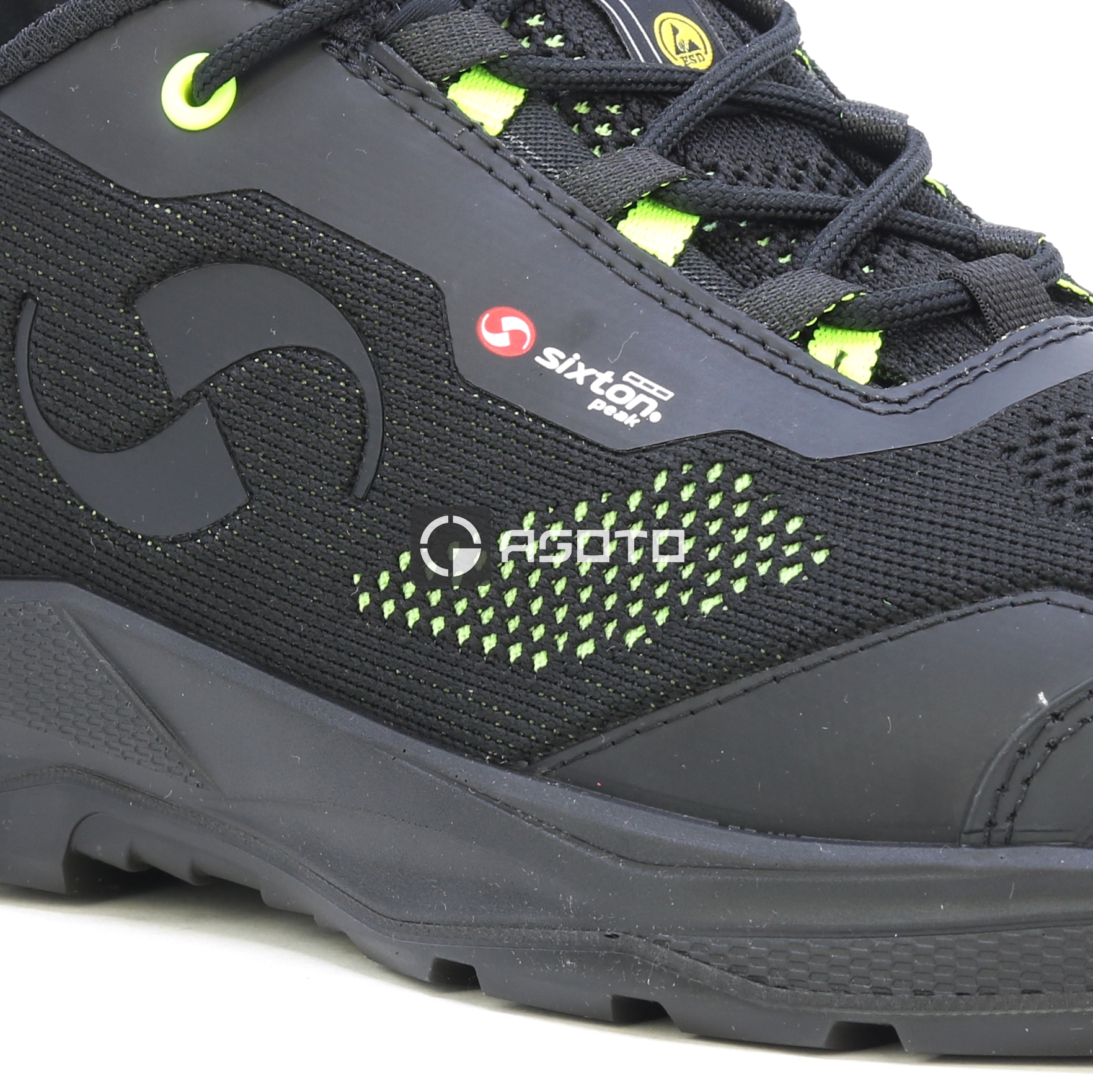 Pracovní obuv Sixton Xeno S3 ESD je ideální volbou pro náročné pracovní prostředí díky svému inovativnímu designu a pokročilým technologiím. Svršek je vyroben z recyklované pletené textilie bez použití žebříku, což poskytuje lehkost a vysokou odolnost. Podšívka 3D Green Air 320 gr. zajišťuje optimální cirkulaci vzduchu a pohodlí. Stélka TALENT FIT D3O je anatomicky tvarovaná, prodyšná a vybavená technologií, která absorbuje nárazy a snižuje únavu nohou. Ochranné prvky zahrnují kompozitní špičku Nano Toe SXT, vyztuženou uhlíkovými nanotrubicemi, a antiperforační vložku KK7 z recyklovaného materiálu, která chrání celou plochu chodidla. Podrážka PU Dual-Density Ccycled® je vyrobena z dvousložkového polyuretanu s vysokou odolností proti skluzu dle standardu SR Antislip. Je také vybavena recyklovanými materiály, které splňují požadavky ESD na odvod statické elektřiny. Dalšími výhodami jsou boční stabilita díky technologii Dynamic HC Control, která fixuje patu a kontroluje boční pohyby kotníku, a torzní stabilita díky systému StabilActive, který podporuje přirozený pohyb chodidla a zvyšuje celkovou stabilitu. Tato obuv splňuje normy ESD a chrání před poškozením statickou elektřinou, což z ní činí spolehlivou volbu pro různá pracovní prostředí.