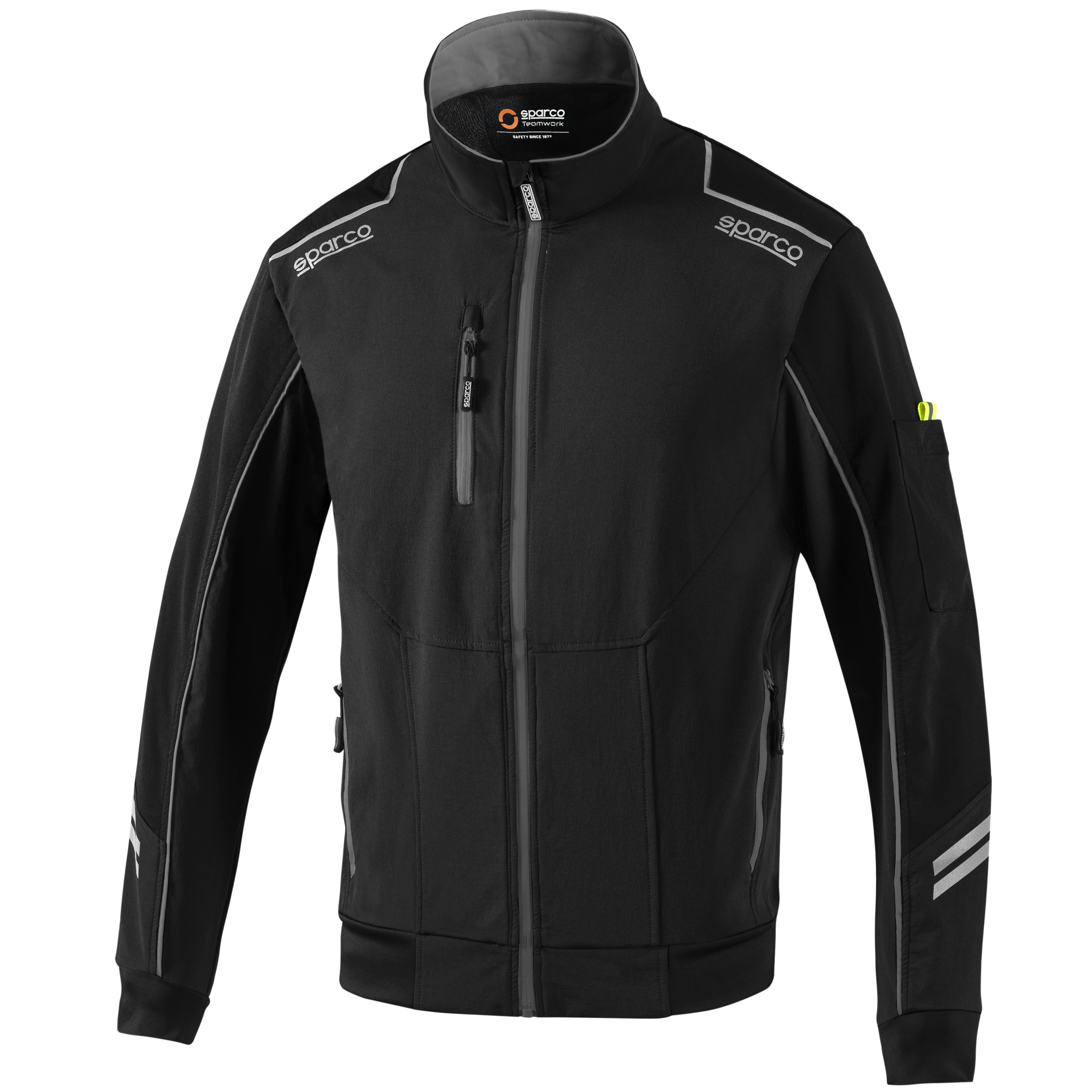 Softshellová bunda Sparco Light, která je větruodolná a nepromokavá. Je vybavena fleecovou vnitřní podšívkou. Materiál: 90 % nylon - 10 % spandex / 240 g/m2 vnitřní: 100 % polyester (polar fleece) reflexní loga sparco, vyztužené vložky na ramenou, ramena a rukávy z materiálu odolného proti oděru. Potažené voděodolné zipy, boční a náprsní kapsy se zapínáním na zip s vysokou viditelností, reflexní proužky na rukávech, super strečová tkanina na manžetách, vnitřní nastavitelná podšívka pro maximální přizpůsobení.
