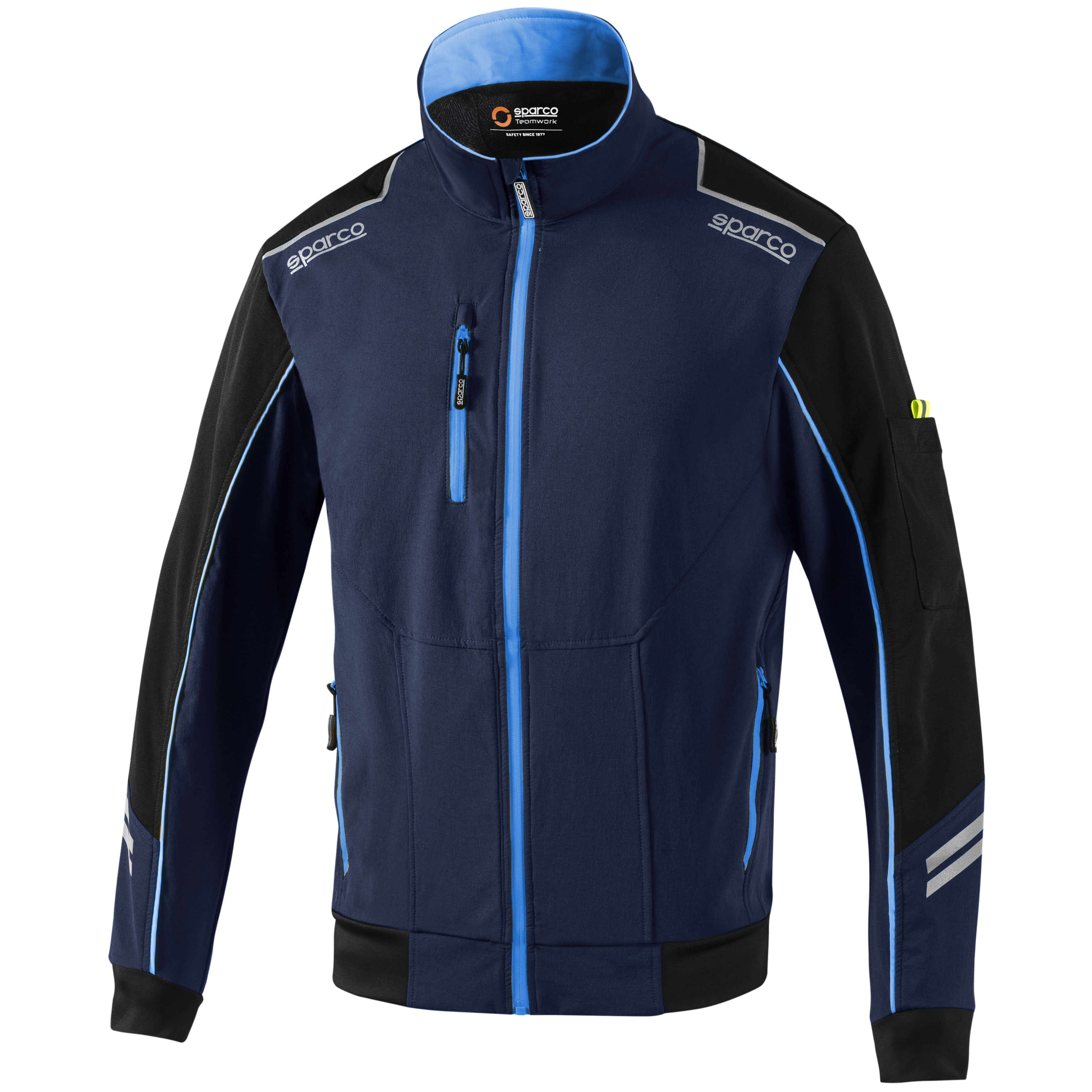 Softshellová bunda Sparco Light, která je větruodolná a nepromokavá. Je vybavena fleecovou vnitřní podšívkou. Materiál: 90 % nylon - 10 % spandex / 240 g/m2 vnitřní: 100 % polyester (polar fleece) reflexní loga sparco, vyztužené vložky na ramenou, ramena a rukávy z materiálu odolného proti oděru. Potažené voděodolné zipy, boční a náprsní kapsy se zapínáním na zip s vysokou viditelností, reflexní proužky na rukávech, super strečová tkanina na manžetách, vnitřní nastavitelná podšívka pro maximální přizpůsobení.