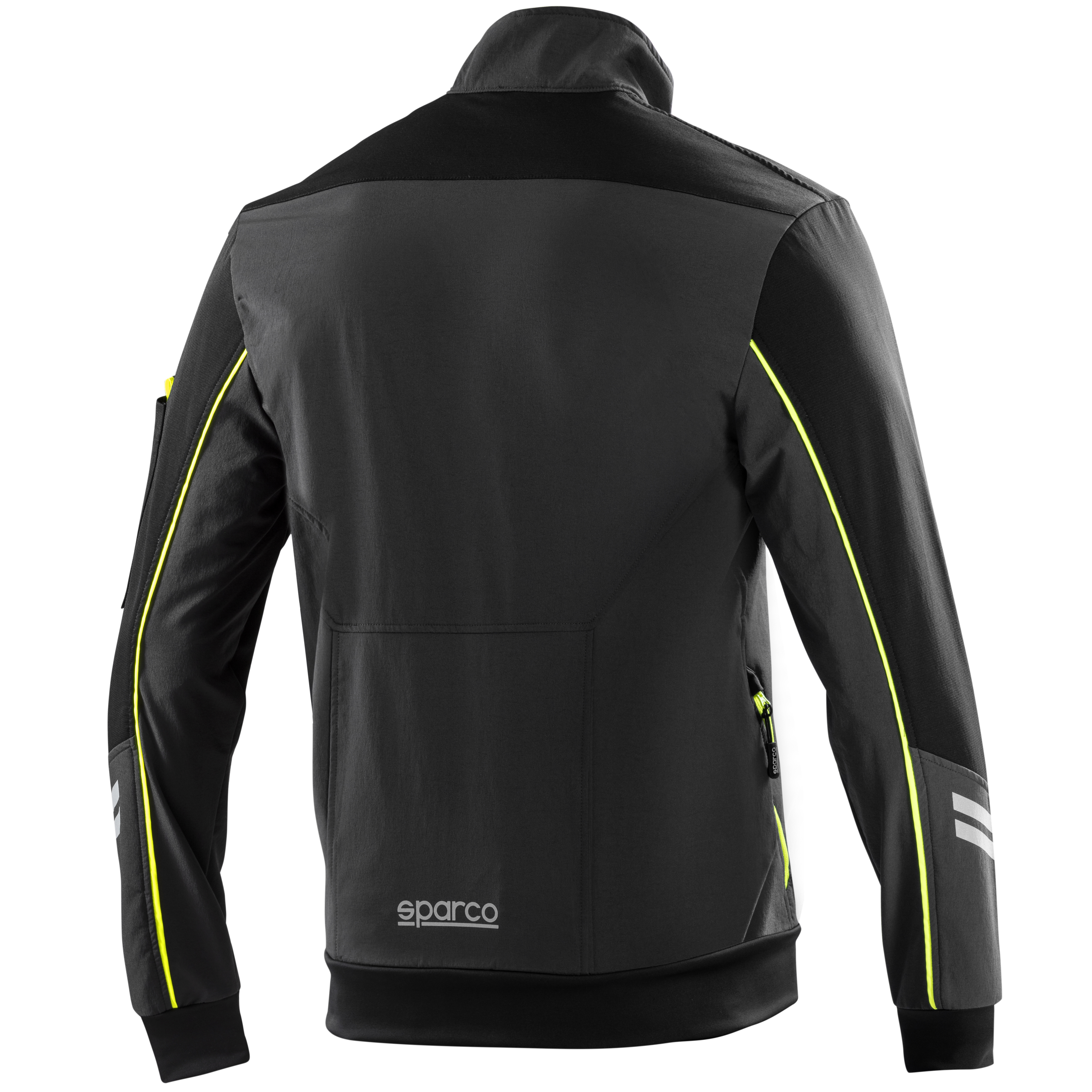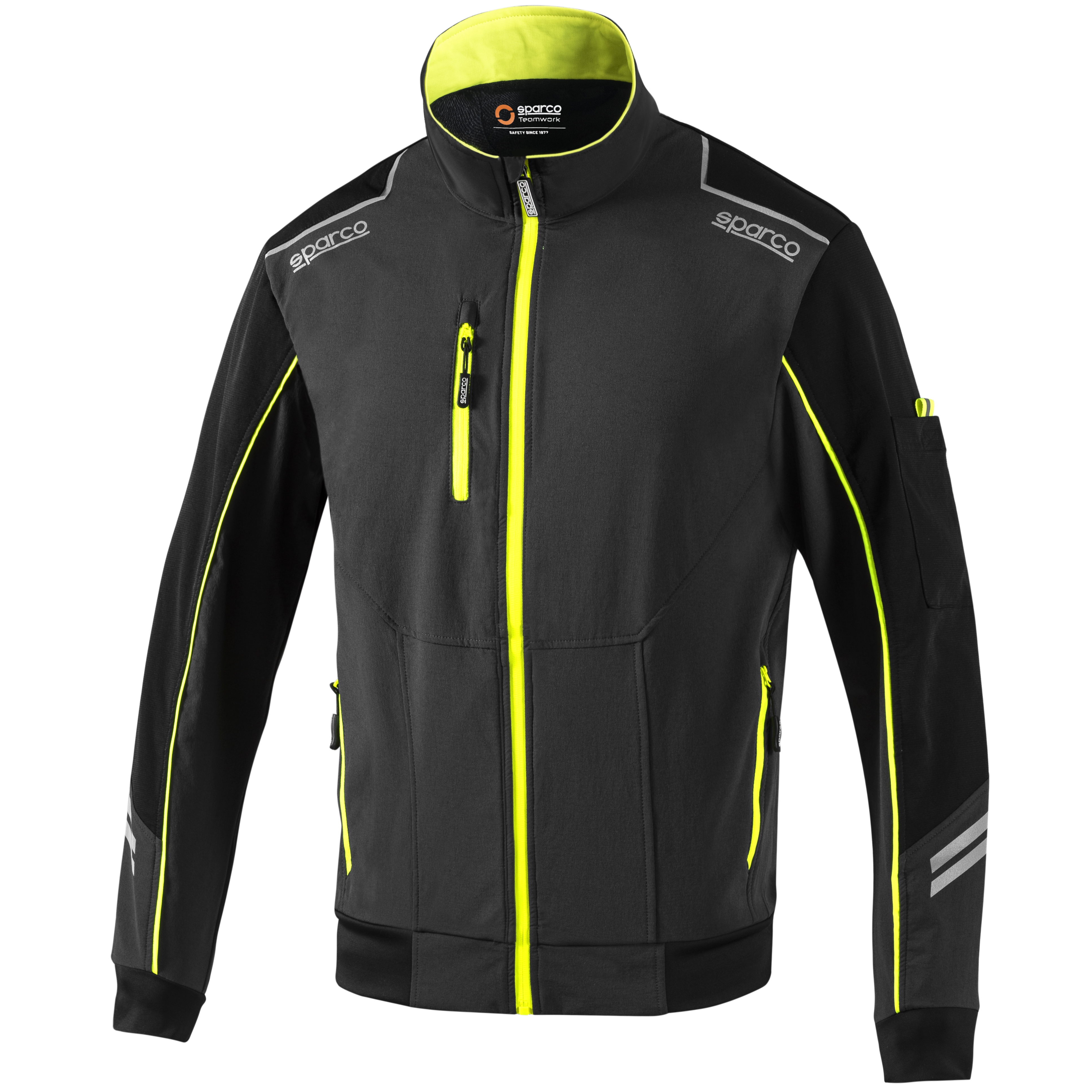 Softshellová bunda Sparco Light, která je větruodolná a nepromokavá. Je vybavena fleecovou vnitřní podšívkou. Materiál: 90 % nylon - 10 % spandex / 240 g/m2 vnitřní: 100 % polyester (polar fleece) reflexní loga sparco, vyztužené vložky na ramenou, ramena a rukávy z materiálu odolného proti oděru. Potažené voděodolné zipy, boční a náprsní kapsy se zapínáním na zip s vysokou viditelností, reflexní proužky na rukávech, super strečová tkanina na manžetách, vnitřní nastavitelná podšívka pro maximální přizpůsobení.