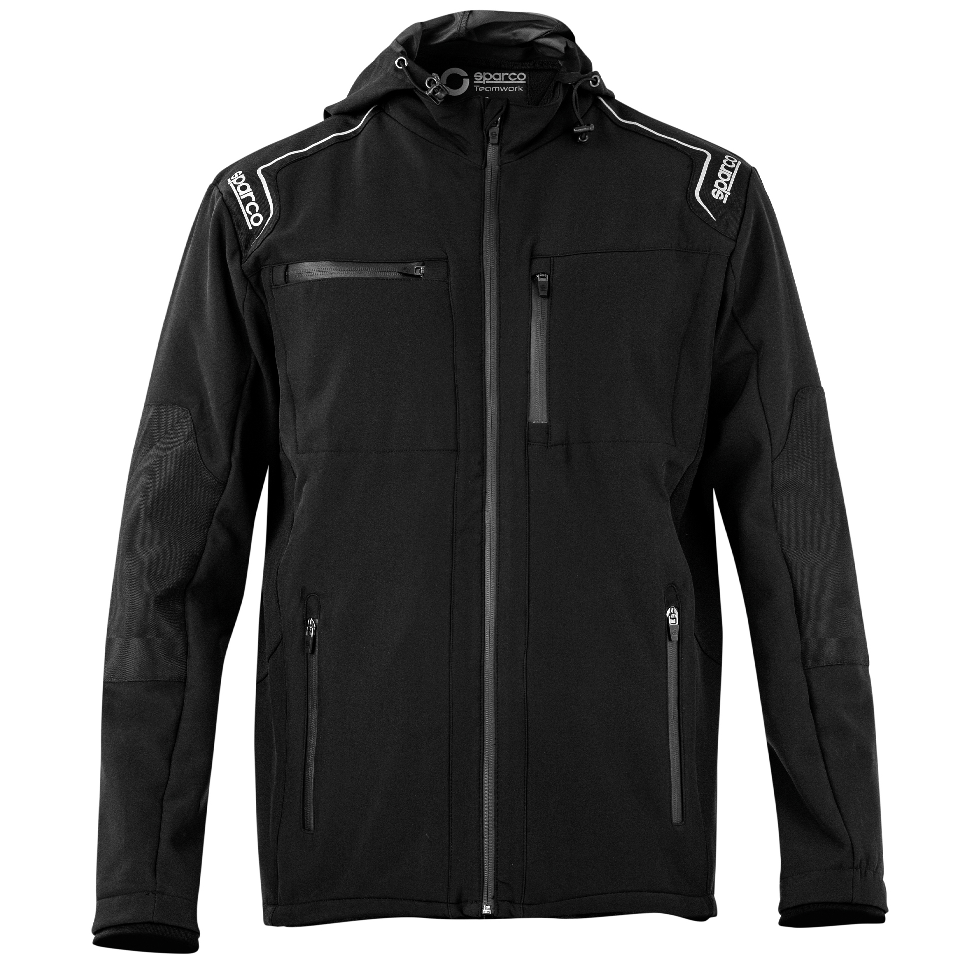 Softshellová bunda odpuzující vodu, více kapes, strečové boční vsadky a odnímatelná kapuce. Měkký a lehký polyester odpuzující vodu. Prodyšné strečové boční vložky. Potahované zipy s pogumovanými stahováky. Zesílené loketní vložky. Elastické manžety a spodní část s nastavovacími prvky. Odnímatelná kapuce odolná proti větru. Materiál: 100% polyester