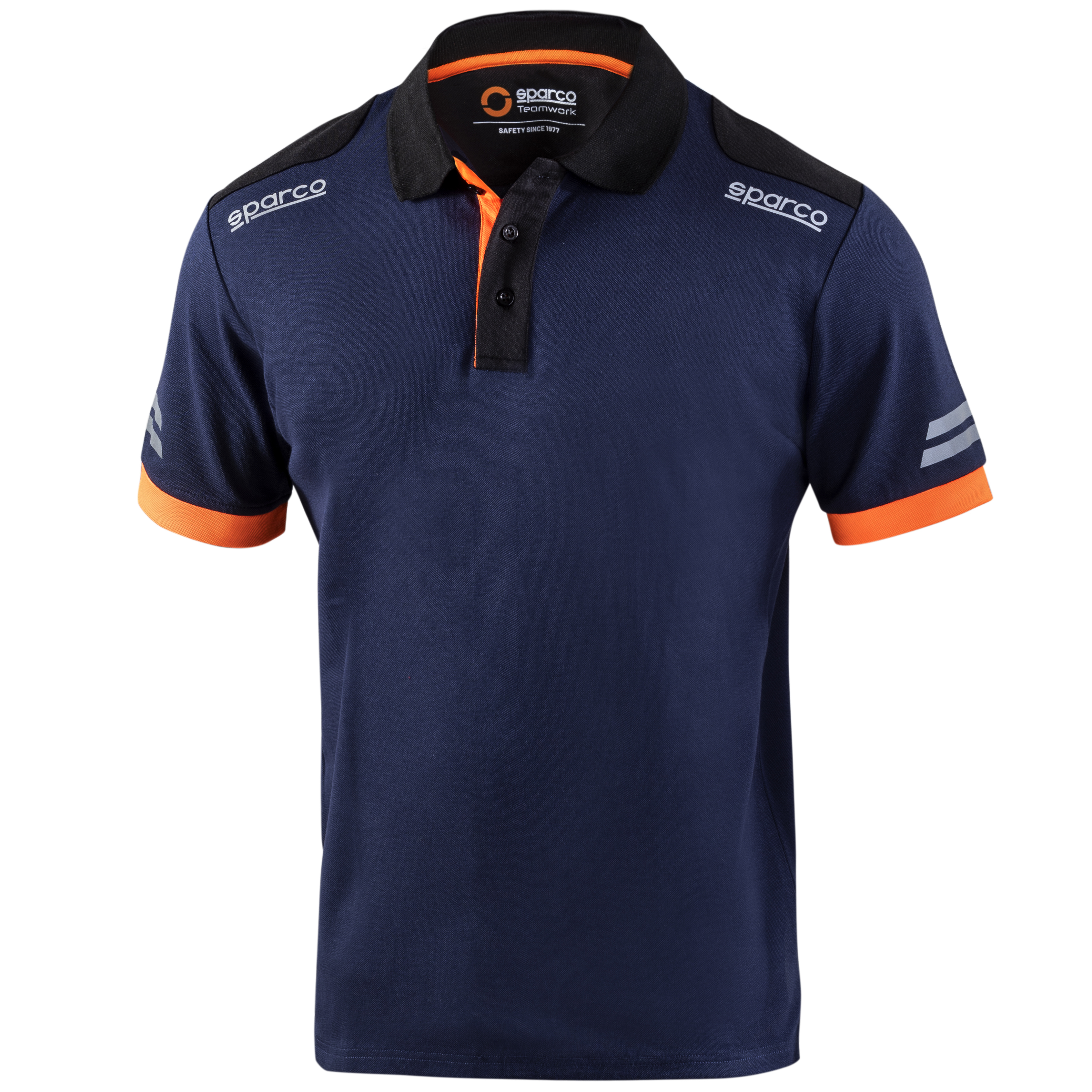 65 % bavlna - 35 % polyester s efektem pique / 180 gsm, reflexní loga Sparco, vysoce viditelné proužky na reflexních rukávech, kontrastní vložky rukávů a límce, zesílená ramena a zapínání u krku na 3 knoflíky, boční rozparky na spodní straně.