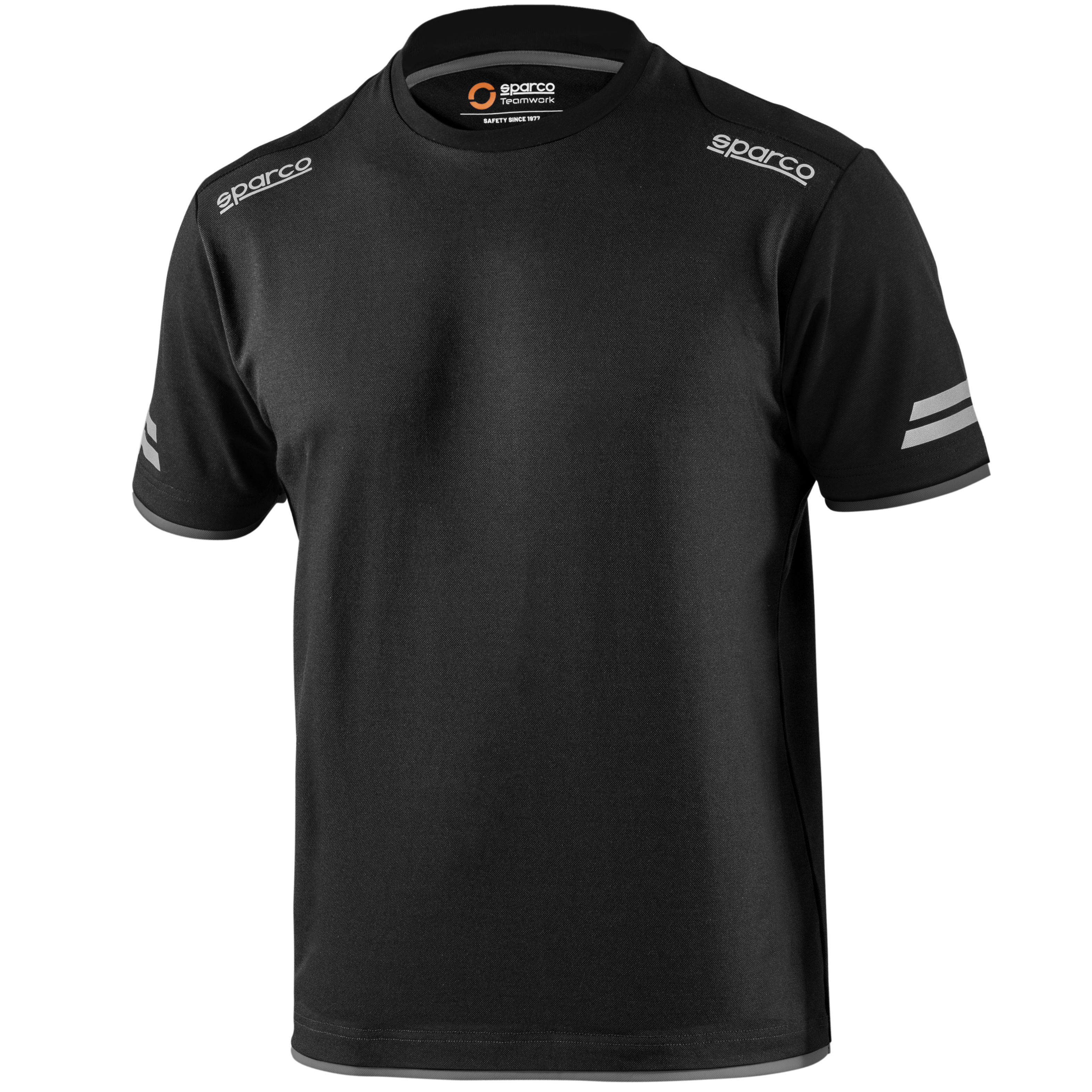 50 % bavlna - 50 % polyester s efektem pique / 170 g/m2 reflexní loga Sparco, vysoce viditelné pruhy na rukávech, zesílená ramena, kontrastní vložky.