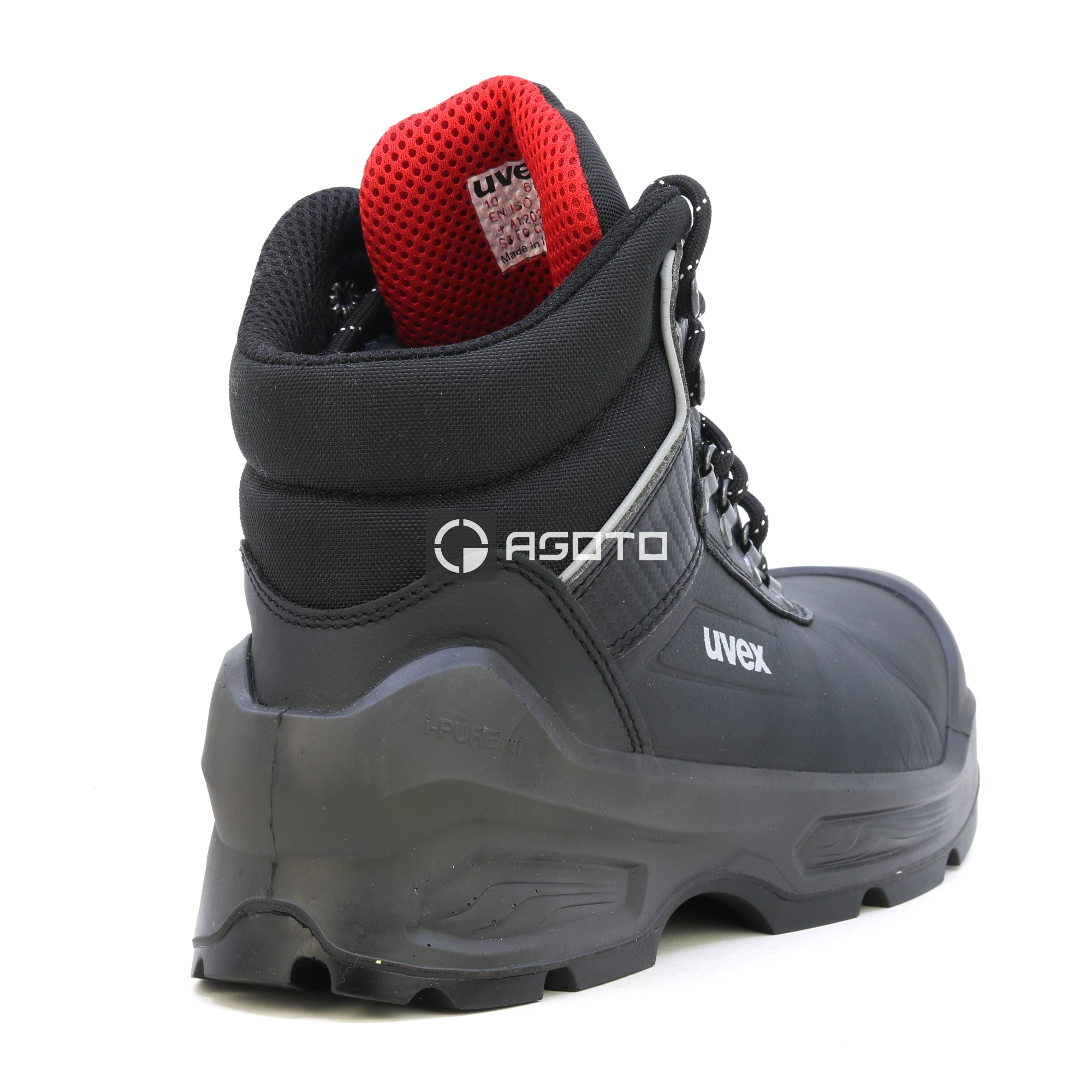 Uvex 3 představuje ideální spojení bezpečnosti, komfortu a lehkosti. Tato obuv byla vyvinuta speciálně pro extrémní podmínky a náročné pracovní prostředí, kde je vyžadována maximální odolnost i pohodlí při dlouhodobém nošení. Kombinuje robustní konstrukci s moderním sportovním designem a využívá nejnovější technologie značky Uvex. Voděodolný svršek z kvalitní kůže doplňuje prodyšná textilní podšívka a uzavřený jazyk, které zajišťují optimální ventilaci a ochranu. Mezipodešev Uvex i-PUREnrj efektivně tlumí nárazy a vrací energii zpět při každém kroku, čímž zvyšuje pohodlí i efektivitu pohybu. Ochranná tužinka bez obsahu kovu spolu s ocelovou vložkou proti propíchnutí zajišťují vysokou úroveň bezpečnosti. Pěnové výztuhy paty a špičky z polyuretanu poskytují dodatečnou odolnost proti nárazům a opotřebení, zatímco reflexní prvky zlepšují viditelnost v horších světelných podmínkách. Model je certifikován podle ESD standardů a všechny materiály podešve jsou bez silikonu, změkčovadel a látek ovlivňujících přilnavost. Obuv Uvex 3 nabízí perfektní rovnováhu mezi ochranou, komfortem a výkonem a je ideální volbou pro profesionály, kteří očekávají to nejlepší.